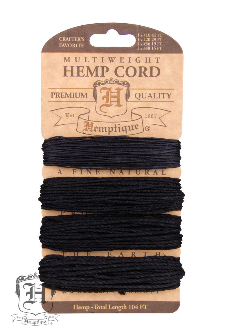 Hemp Cord Card - Multiweight Black #10-#48