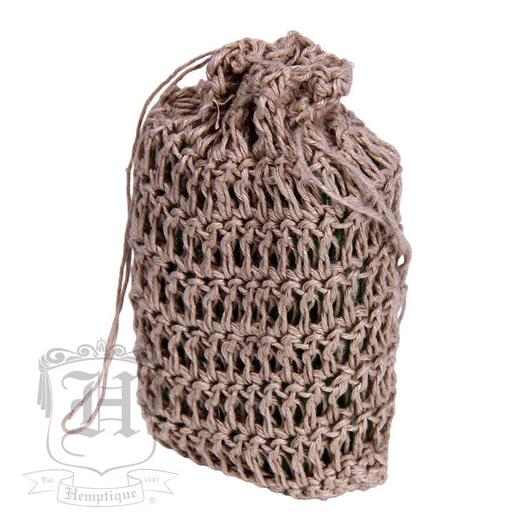 The Hemp Soap Holder by Hemptique is 100% hemp. Luxurious and stylish, this beautiful item is the perfect companion to Hemptique Handmade Hemp Soap!